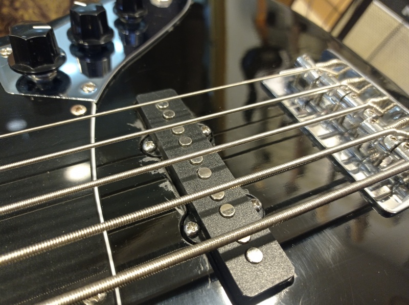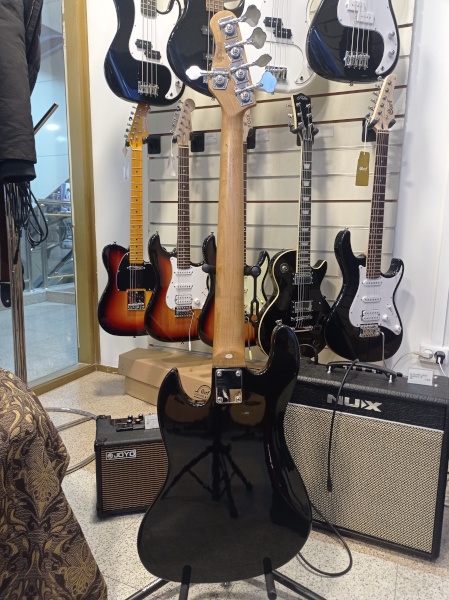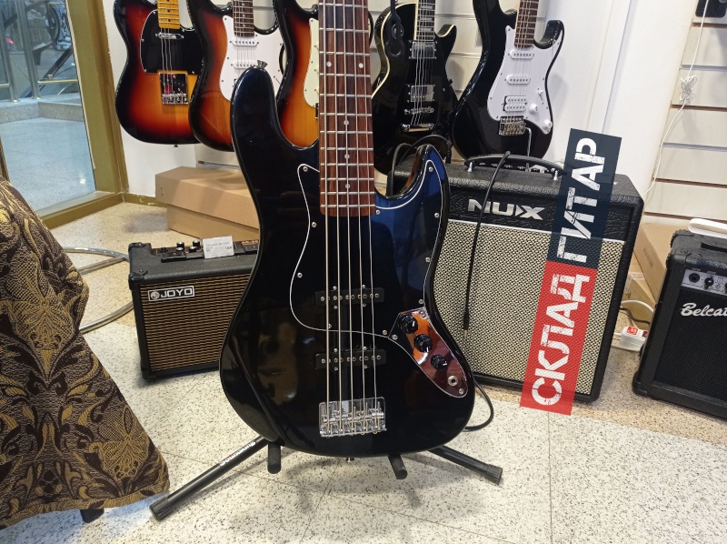 На басу установлен бридж JB Classic, два классических звукоснимателя JB, два регулятора громкости и один регулятор тона. На басу установлена никелированная колковая механика. Цвет инструмента черный.